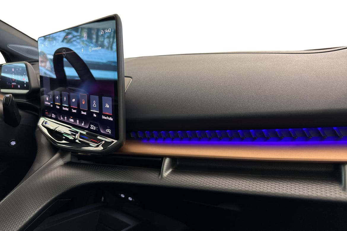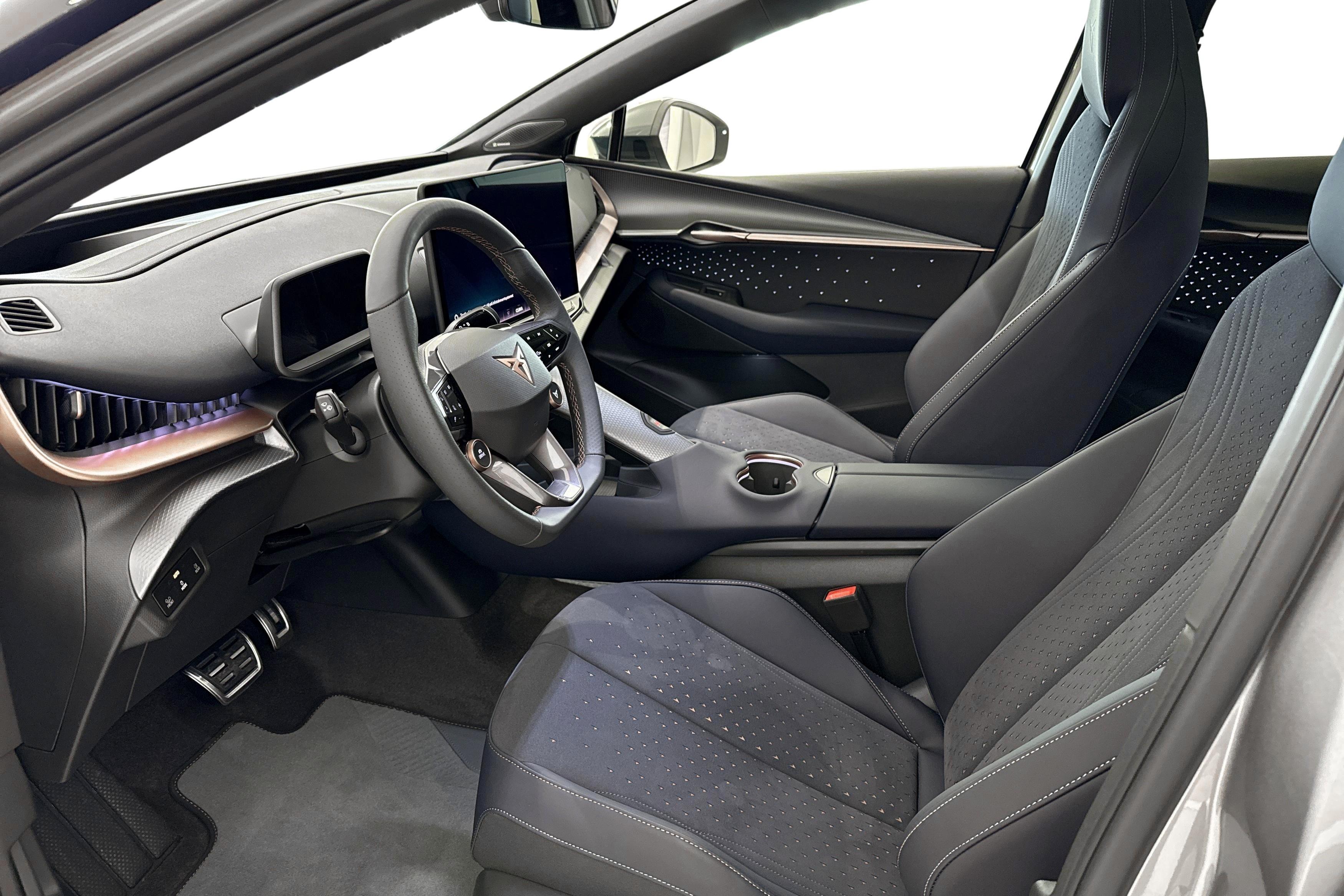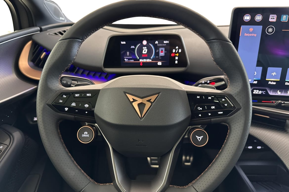 CUPRA Tavascan VZ är en toppmodern elbil där teknik möter design och sportkänsla. Med Adrenaline paketet får man utöver standardutrustningen soltak, 21" tums fälgar med sommar däck, Sennheiser ljudsystem, Top-view kamera, El stolar fram, samt Head Up Display (HUD). 20" Tums vinterhjul ingår till bilen!