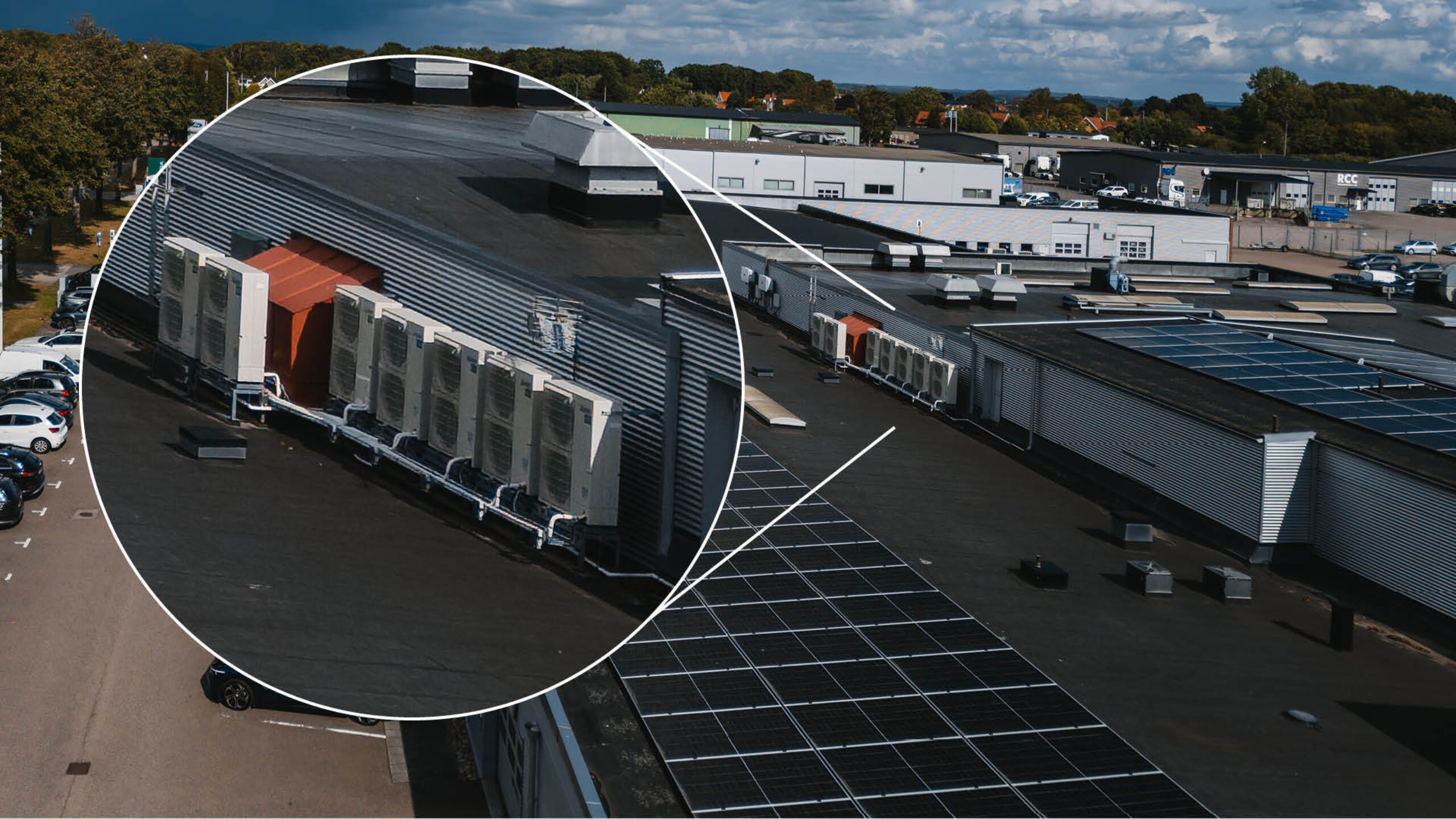 På taket på VW-anläggningen i Ängelholm finns nu Mitsubishi DX-pumpar som erbjuder både kyla och värme för optimal komfort.